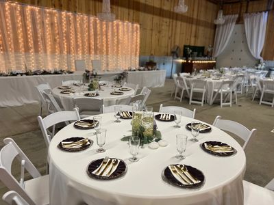 - Tables (30 round, 10-8ft, 4-6ft rectangle) (included)